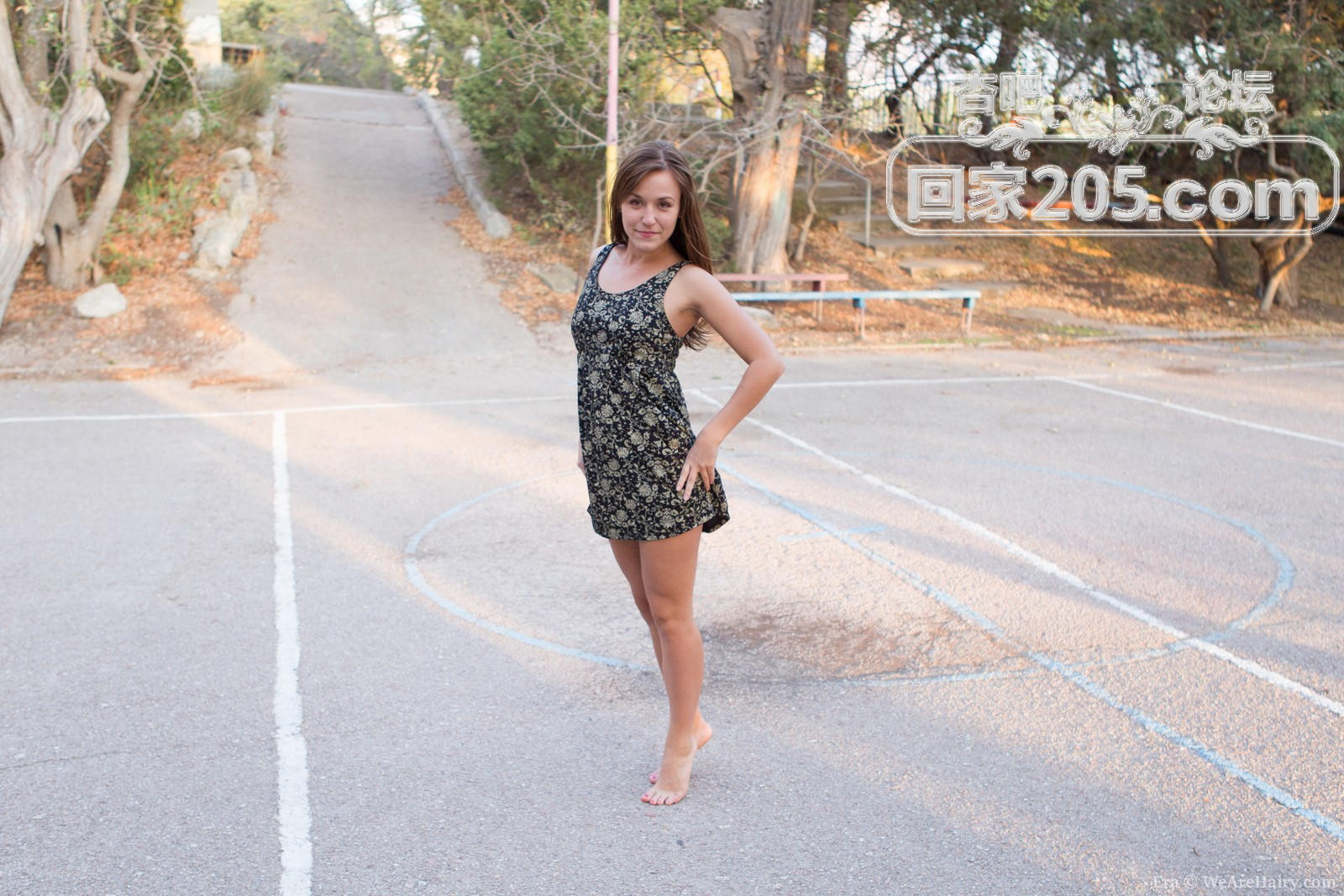 花色吊带裙棕发美少女户外无人小操场脱光放浪【16P】